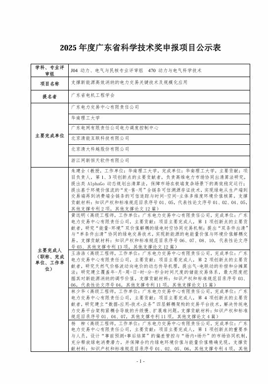 关于2025年度广东省科学技术奖项申报项目相关情况公示